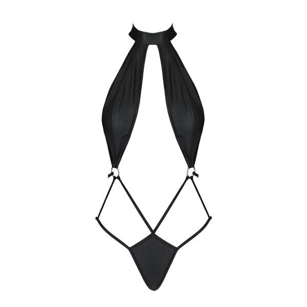 Este body JANNIES em pele preta exala sensualidade e sofisticação, realçando as suas curvas de maneira única e elegante. O fecho no pescoço permite um ajuste perfeito, facilitando a sua colocação e realçando simultaneamente a linha do decote.