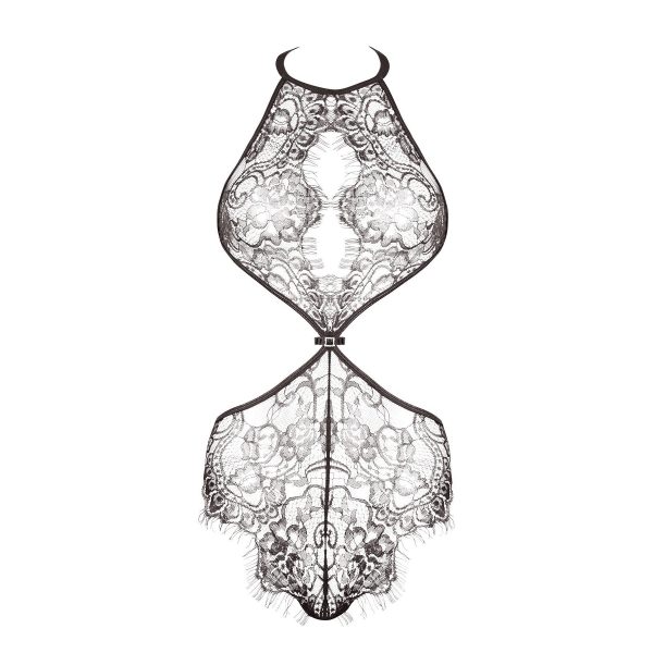 É um modelo excecional e sexy que chama a atenção pela sua elegância e design arrojado. Feito de renda preta delicada com um belo padrão floral terminado com franjas, este body acentua as curvas femininas enquanto permanece extremamente confortável.