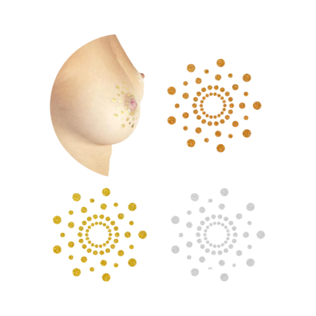 As DECORAÇÕES DE PELE MIMI são temporárias, circulares e adaptam-se a todos os tipos de seios, realçando-os.