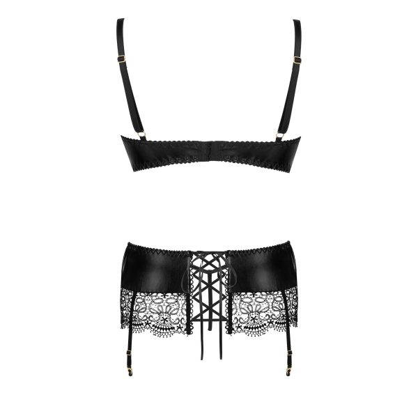 Descubra a sensualidade e a elegância com o conjunto Adelia, concebido para realçar a sua feminilidade e aumentar a sua confiança. O conjunto inclui um sutiã, um cinto de ligas e uma tanga, criando uma composição única para ocasiões especiais.