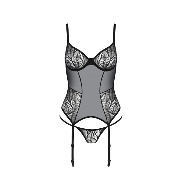 Conjunto de corpete e tanga LEAFA: este corpete sedutor foi criado para realçar a silhueta feminina, com um corte que modela perfeitamente a cintura e o busto.