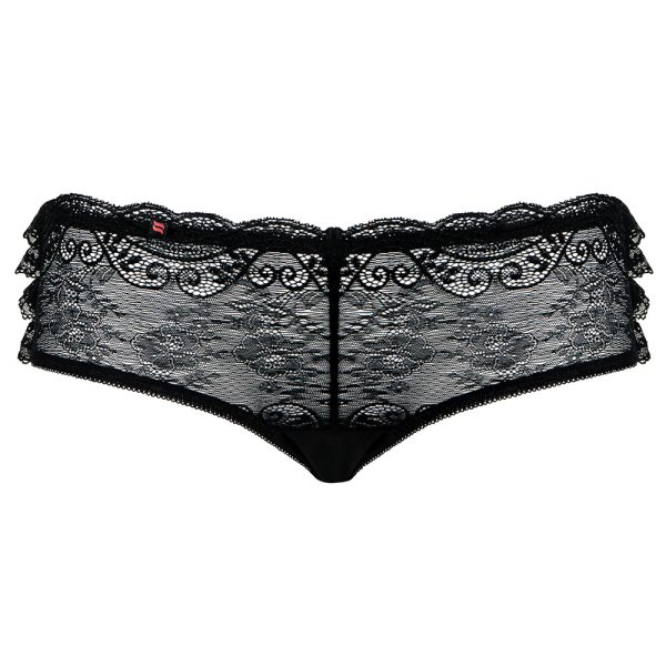 Sinta-se uma bailarina do famoso Moulin Rouge com esta romântica cueca. Feitas em renda elástica, com bordado floral na frente e na parte de trás suaves folhos com um laço a rematar.