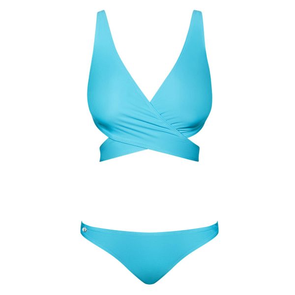 É hora de realizar as suas fantasias de férias! Você certamente não fará isso sozinha, pois temos um bilhete para a ilha dos prazeres para dois. Classicamente azul, mas não convencionalmente feminino – vai fazer você querer puxar… os fios certos! Graças a este biquíni pode facilmente encorajar o seu escolhido a desfrutar dos diferentes prazeres das férias.
