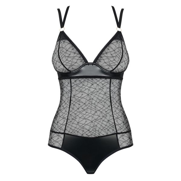 Este body une a mais delicada renda ao luxurioso vinil de efeito molhado. A junção dos dois materiais provoca um look romântico mas arrojado. Revolucione as suas noites, com um toque de sensualidade. Este produto é da marca OBSESSIVE, uma marca líder, repleta de erotismo e sensualidade com modelos únicos que enaltecem ainda mais o corpo das mulheres.