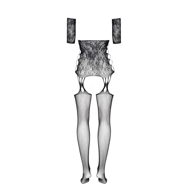 - Construção: Meias e cuecas integradas, criando um look coeso e sensual.