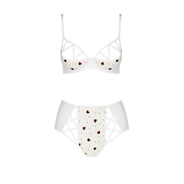 O conjunto de 2 peças Lovelia Bikini da Passion é a combinação perfeita de elegância e sensualidade. O sutiã, com aros reforçados e recortes estratégicos, proporciona um ajuste ideal, realçando as curvas com sofisticação. A tanga, confecionada em tule delicado com um padrão romântico de corações, adiciona um toque irresistível ao conjunto.