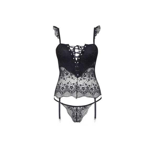Apresentamos o conjunto de corpete e tanga Alena, a escolha perfeita para qualquer mulher que deseje sentir-se especial e sedutora. Este corpete incrivelmente sensual combina a elegância clássica com um design moderno, que certamente chamará a atenção.