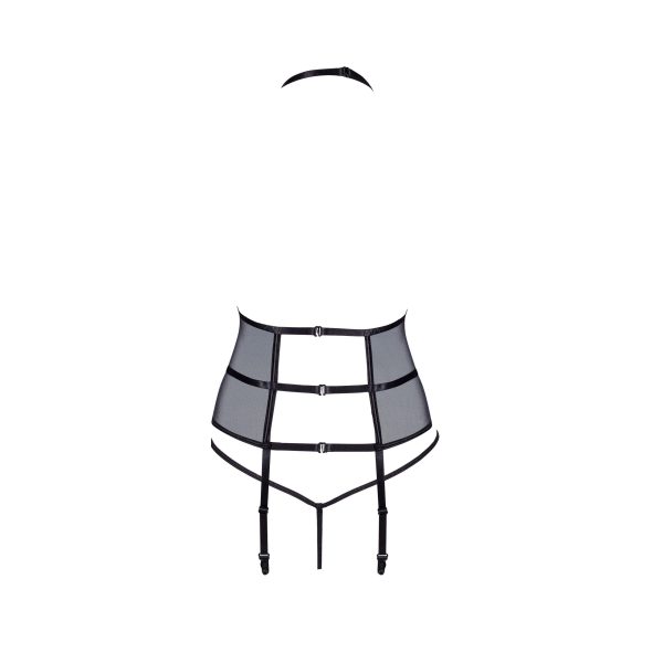 - Extras: Inclui uma tanga a condizer e tiras de liga ajustáveis, permitindo criar um visual completo e sedutor.