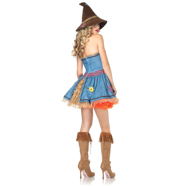 A FANTASIA SUNFLOWER SCARECROW  é uma representação alegre e feminina do clássico espantalho, combinando elementos rústicos com o brilho dos girassóis. O vestido destaca-se por cores vibrantes, geralmente com tons de amarelo e terra, evocando um estilo campestre e descontraído. Esta fantasia oferece um visual simples, porém encantador, perfeito para quem deseja uma aparência divertida e cheia de frescura, inspirada na natureza.