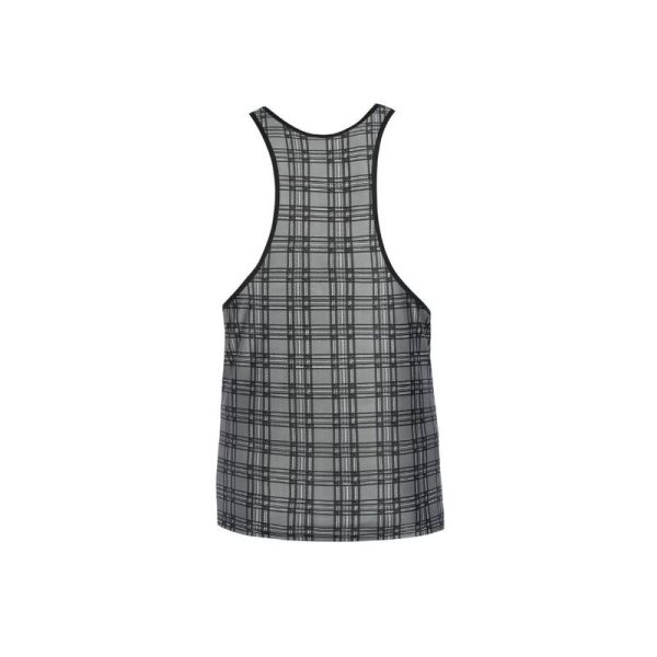 T-shirt manga cava BALANCE TOP tamanho XL de microfibra suave, com um bonito estampado aos quadrados em preto, cinza e branco.